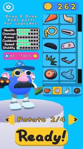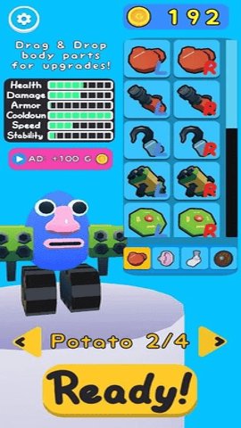 2、马铃薯竞技场提供了多样的皮肤搭配,玩家可以更快速地进阶。