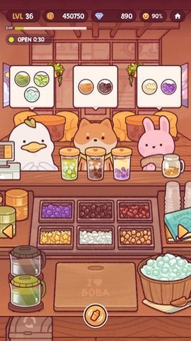 4、进入店铺后,点击【OPENSTORE】开始营业,玩家需要调制各种各样的奶茶饮品,满足不同顾客的需求。