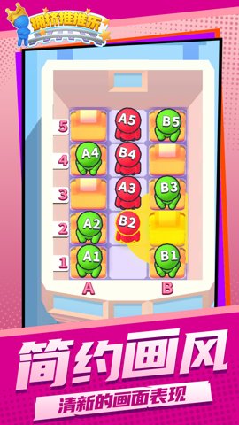 1、拥挤推推乐的分类拼图玩法非常有趣且趣味十足,玩家需要动脑筋,灵活运用自己的推理能力和操作技巧,才能成功地将所有乘客带到他们应该去的座位上。