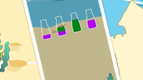 1、游戏开始时,屏幕上会展示多个装有混合颜色沙子的瓶子,玩家的任务是将同一颜色的沙子倒入同一瓶子中,直到所有瓶子中的沙子颜色都一致。