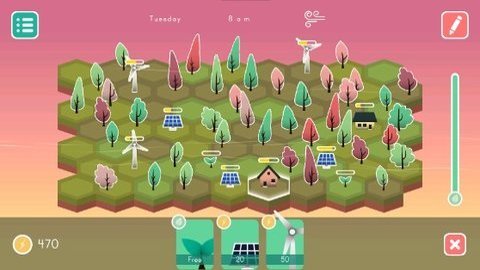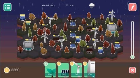 1、在游戏开始时,玩家需要观察天气状况和初始城市模型情况,然后利用初始能源在合适的空地上放置收集能源的设施,如风车、太阳能电板等。