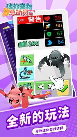 3、迷你宠物总动员是一款富有创意和乐趣的益智游戏,它不仅让玩家体验到培育小宠物的乐趣,还让玩家感受到科技与生命的奇妙结合。