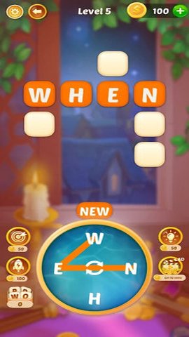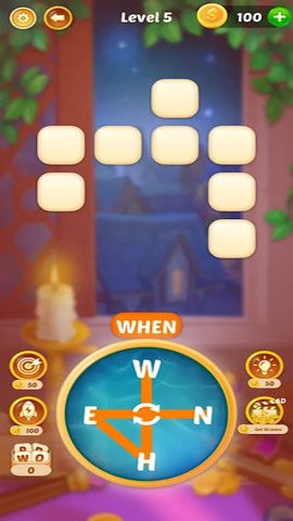 2、玩家需要在字母罗盘中选择合适的字母,拖动到空白格子中形成单词。