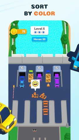 4、将同类颜色的汽车有序地安置在各自的停车区间,避免发生任何形式的碰撞是玩家的核心目标。