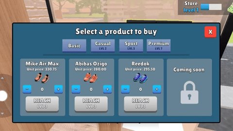 3、玩家可以自由管理球鞋店,上线更多款式的鞋子,满足顾客的需求,每天接待不同的客人,了解他们的需求,为他们进行推荐。