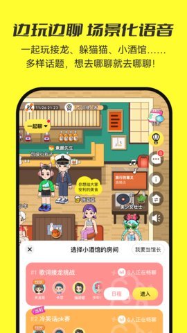 4、这款社交应用采用了场景化的模拟方式,让用户可以在各种场景内遇到与自己有共同兴趣爱好的用户,满足一切娱乐需求。