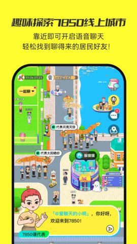 3、在7850中,用户可以自由探索这个虚拟的城市,与居民好友不期而遇,探访各式店铺,欣赏草地湖泊,与可爱的萌宠相伴左右。