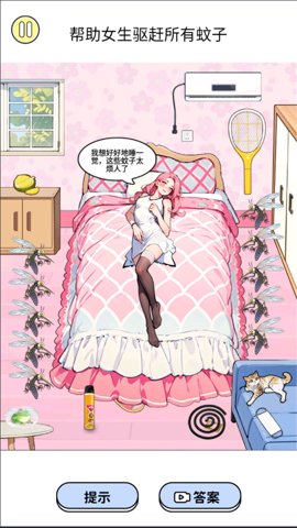 3、有时候,玩家需要快速反应,迅速点击屏幕来赶走蚊子;有时候,玩家需要耐心等待合适的时机,使用道具来一次性清除多只蚊子。