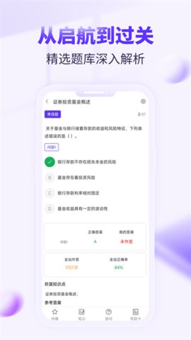 基金从业资格考试平台是一款专注于帮助考生学习和备考的应用软件。通过精确全面的练题数据报告,该平台能够快速诊断考点掌握情况,帮助考生全面掌握考点学习的方法。平台提供丰富的题库和专业解析,包括每日一练、历年真题、模拟试题、高频考点、知识点练习等海量试题。