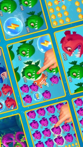 2、玩家通过滑动屏幕控制自己的鱼儿游动,同时使用攻击键啃咬其他鱼类,吞噬它们以不断成长壮大。