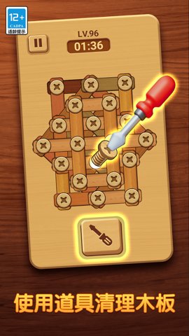 1、玩家需要运用智慧和技巧,通过拧下螺栓来清理木板,将所有木板清理完毕,即可成功通关。