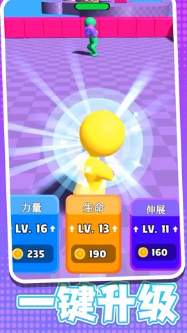 3、玩家通过在屏幕上滑动操作橡皮人,使其伸长手臂出拳击倒敌人。
