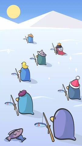 3、玩家还可以通过放置挂机的方式帮助企鹅获得鱼类,同时收集企鹅碎片和开凿冰洞。