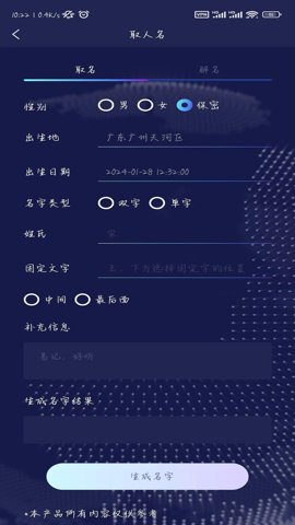 1、这些功能让用户可以更加全面地了解和掌握名字的含义和适用范围,从而更好地为自己的孩子、宠物等取名字。