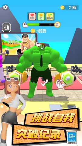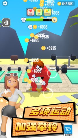 1、在我爱搬砖这个动漫世界中,玩家可以尽情地锻炼身体,通过点击人物的健康来增强自己的身体素质。