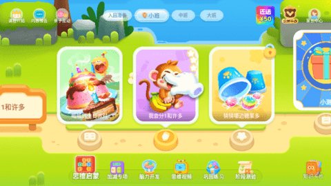 1、除了讲解知识点,宝宝巴士思维还设置了引导应用的环节,帮助宝宝认识数字与图形,掌握数字书写方法,理解数量关系与规律,以及数字的合成与分解等训练。