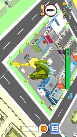 2、玩家通过摇杆控制怪兽移动,遇到建筑就会自动攻击,引发警报。