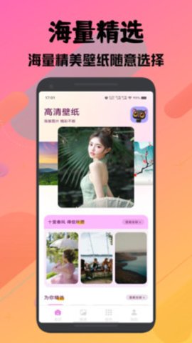 1、根据用户的使用历史和偏好,智能推送符合口味的壁纸,让用户能够找到最喜欢的壁纸。