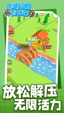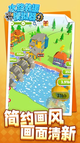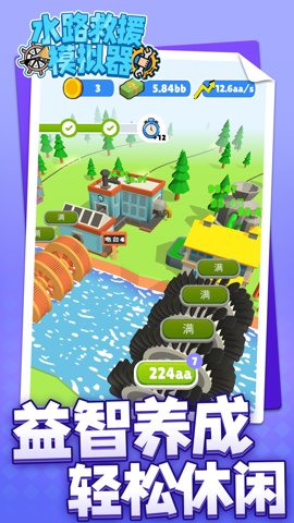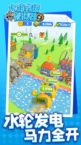 水路救援模拟器是一款富有创意的经营游戏,玩家在游戏中扮演救援队队长,负责管理和建设水车来为村庄提供电力。这款游戏以挂机类休闲益智游戏的形式呈现,让玩家在轻松愉快的游戏氛围中体验水路救援的乐趣。 玩家需要不断赚钱来建造水车,并通过升级水车、扩宽河道等方式来提高水车的效率和产能。