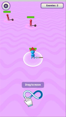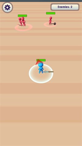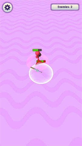 1、玩家只需滑动屏幕即可操控火柴人行动,利用火柴人周围武器的攻击范围来击败敌人。