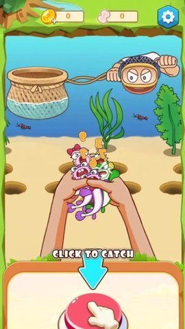 2、玩家需要在海洋中捕捉各种鱼类,通过点击按钮控制双手,享受捕获的乐趣。