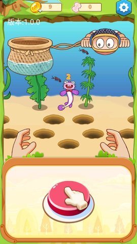 3、进入抓鱼界面,当鱼跳出洞口时,快速多次点击按键,直至鱼被放进捕鱼框,抓鱼成功。