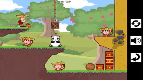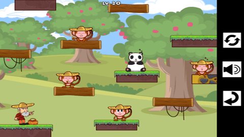 3、玩家将扮演一位老汉,帮助他找回被调皮的猴子偷走的帽子。