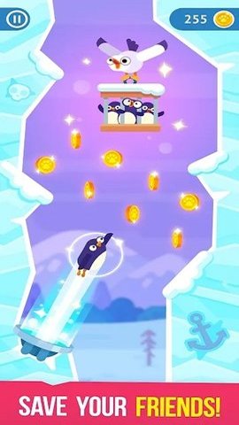 3、任务导向和回程机制增加了游戏的策略性和目标感,硬币不仅可以解锁新的企鹅角色和发射装置,还能为玩家带来额外的分数加成。