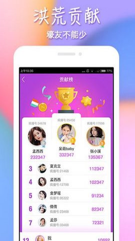 2、这个应用程序还提供了公正的榜单,用户可以关注支持喜欢的主播,登上明星榜、魅力榜、周星宝座,人人都有机会登上富豪榜。