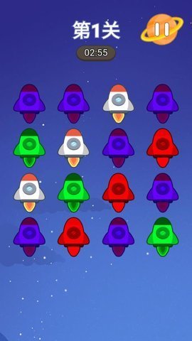 3、玩家需要策略性地移动飞行器,将相同颜色的飞行器横竖排列,以实现消除。