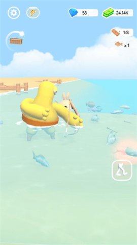 老板摸鱼去是一款趣味休闲游戏,属于趣味探索类游戏。玩家需要根据游戏提示前往指定的位置,可以选择前往海洋边区摸鱼。游戏右边的按钮用来控制玩家当前的状态,当玩家站起来后可以控制刺鱼按钮。