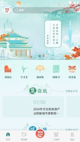 文化广东是一款生活app应用,是省文化和旅游厅公共服务平台数字文化移动端文化广东APP。该应用主要包括看演出、学才艺、逛展览、观直播、阅图书、赏非遗、订场馆等内容板块,为用户提供丰富多彩的文化体验。 为了提升用户体验,文化广东APP设计了简洁直观的界面,使初次使用的用户也能快速上手。