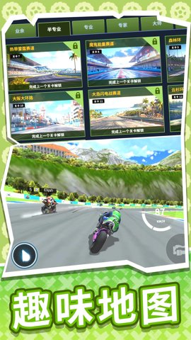 1、除了赛车的选择和驾驶技术的挑战,玩家还可以在游戏中体验到各种不同类型的赛道。