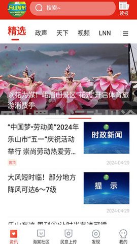 2、除了新闻资讯外,乐山发布还提供便民和社会服务,如张贴、积分、投票和会议等服务。