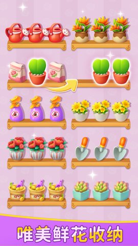 2、通过丰富的鲜花元素、多样性的关卡设计以及结合了收纳整理与消除元素的玩法,吸引了众多玩家的喜爱。