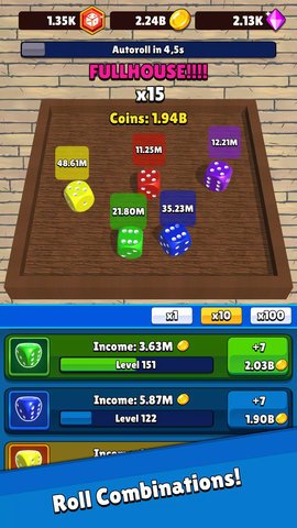 2、闲置骰子3D通过独特的玩法,结合了运气和策略,为玩家带来新颖的游戏体验。