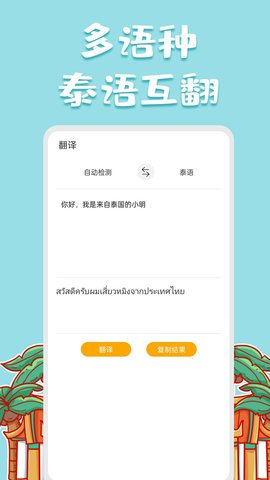 泰语翻译官手机版是一款功能强大的外语翻译应用,为用户提供了多种学习泰语的方式和工具。其中包括泰语情景对话,通过真人模拟的方式让用户身临其境感受泰国人之间的交流方式。该应用还接入了泰国本土字词库,能够精准极速地进行中泰文及多国语言与泰文之间的互译,帮助用户快速查阅相关泰语知识。