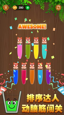 2、挑战水排序还具有一定的趣味性和挑战性,玩家可以在游戏中体验到不同难度级别带来的挑战和乐趣。