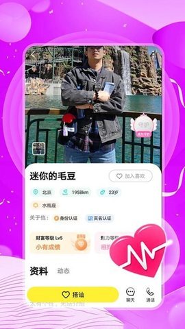 4、在乐缘中,用户可以完善个人资料,展示真实自我,并通过一键搭讪、语音通话、私信聊天等多种方式与他人互动,让交友过程更加纯粹简单。
