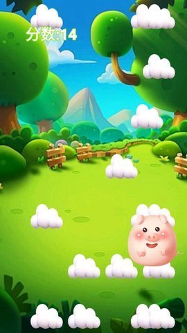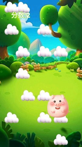 2、游戏的核心玩法是通过控制小猪进行跳跃,玩家需要在小猪落地的瞬间点击屏幕,使其跳跃至下一个云朵。