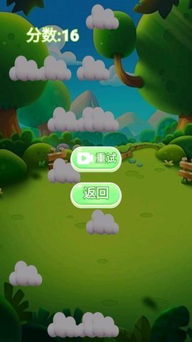 3、如果玩家没有跳到云朵上,游戏就会结束并显示全部分数。