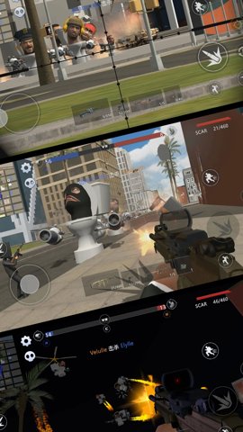 2、厕所人对战相机人战争游戏是一个新颖有趣且趣味十足的FPS厕所战斗射击游戏,让玩家可以体验厕所男和摄像头之间的激烈战斗。