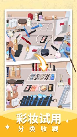 空间收纳达人是一款益智游戏,通过整理化妆品、玩具、工具、厨具等各种物品,挑战玩家的整理收纳水平。玩家需要花费一点,有条不紊地进行操作,将物品完全放好才能进入下一关。这是一个考验玩家整理收纳能力的绝佳机会。