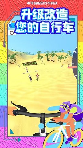 3、自行车冲冲冲是一款充满乐趣和挑战的自行车模拟休闲游戏,适合所有喜爱自行车运动和挑战的玩家。