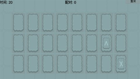 2、玩家可以点击游戏区域的任意卡片,翻开两个相同的字母牌将会消除,不同的卡牌则会翻回去。