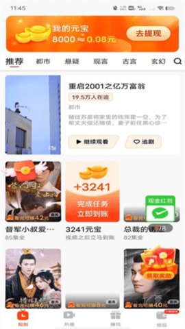 1、静谧之音短剧还推出了创新的“看剧赚钱”模式,让用户在观影过程中有机会赚取额外收入。