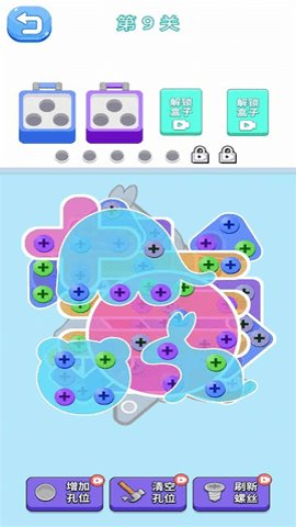 2、燃烧吧智商是一款益智加解压类小游戏,玩家可以体验拆螺丝的过程,通过匹配相同颜色的螺丝来拆除完成任务。