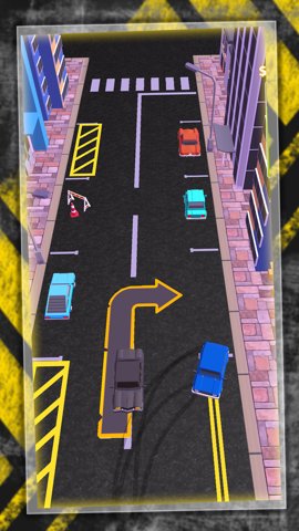 1、游戏采用了极简的卡通风美术画面,给玩家不一样的视觉体验,让玩家在找车位的过程中尽情享受漂移的激情,体验真实的碰撞和驾驶感受。