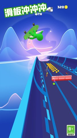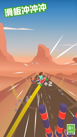 2、滑板冲冲冲专为喜欢动感玩法的玩家设计,游戏中的操作简单易上手,但是要想在赛道上取得胜利却需要玩家具备一定的技巧和反应能力。