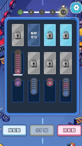 2、玩家只需将格子中颜色相同的轮胎放在一起即可进行合成。